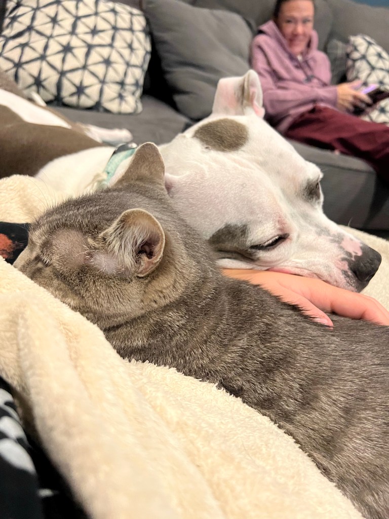 I have never left the house unnoticed by Raven and Nala. I’m their sun, moon, and human mattress.